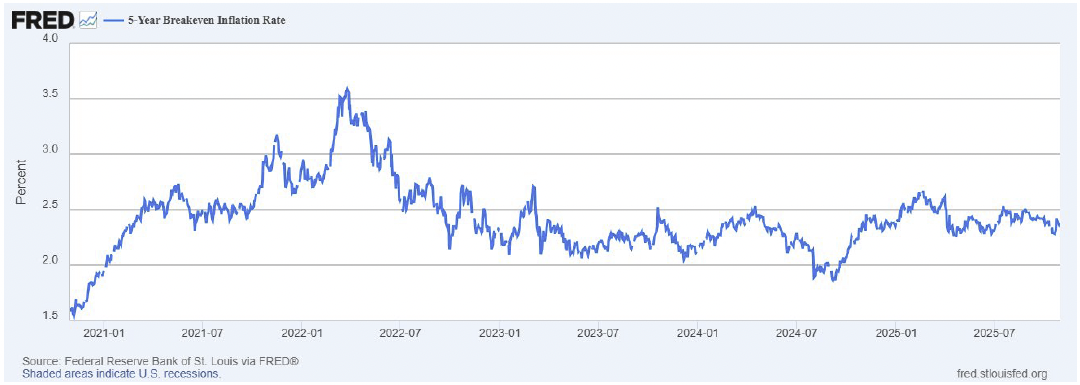 And what about what has been the primary downside risk confronting investors for much of the 2020s, which is the threat of sustainably higher inflation? Expectations remain fully contained with the latest 5-Year Breakeven Inflation Rate reading still drifting below 2.4%.